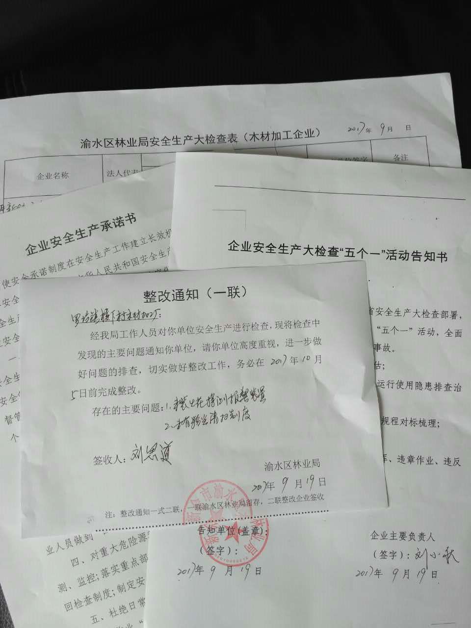 在下属单位听取负责人汇报安全生产工作,查看安全台账,重点检查督导森林防火情况;在相关企业实地排查安全隐患,查看安全生产台账,重点督导安全用电、用火及施工安全等。行动中送达企业"五个一"告知书,与企业签订安全承诺书,并对检查出的安全问题当场开具整改通知。